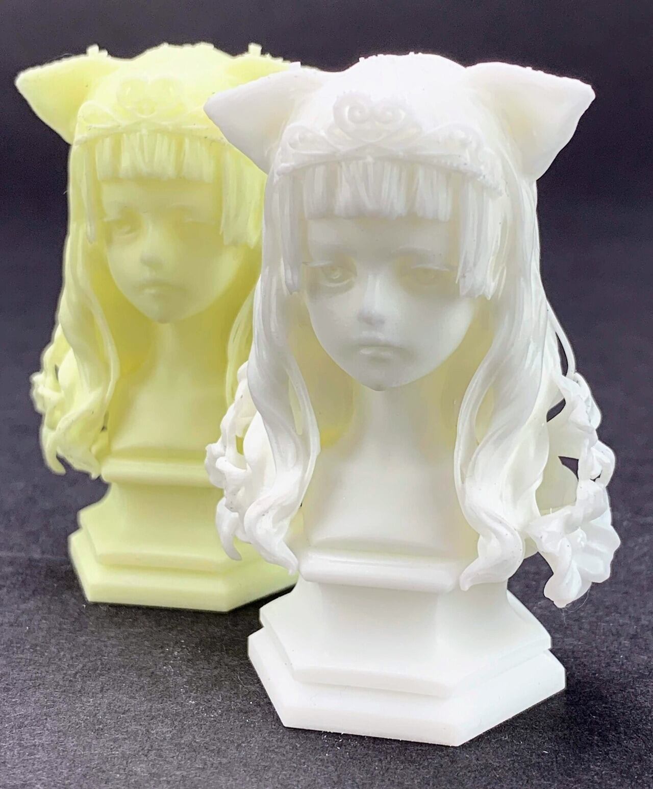 材料時と出力後は黄ばみがかったレジンですが、紫外線が当たることでその名の通り「白雪姫」の様な白さに変化するユニークなレジンです。